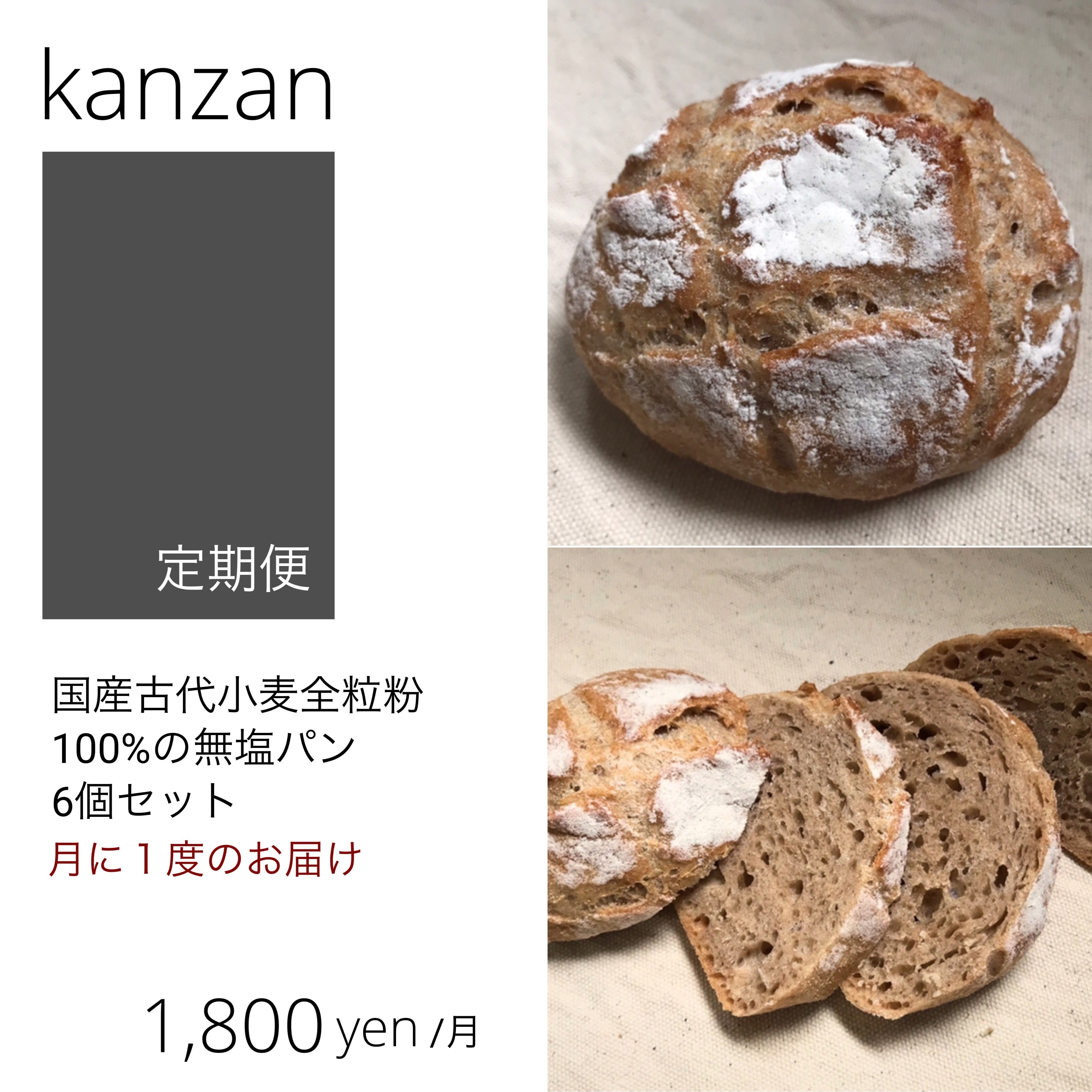 〜 無塩パン(古代小麦100%) 定期便 〜